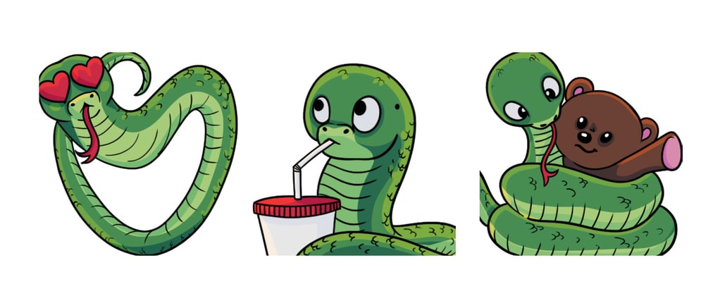 6x Lined, Coloured and Shaded Snake Emotes.